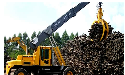 China is rich in forest resources, which has led to the rapid development of papermaking, wood-based panels, and wood related industries. The QLYS15DY grab of Bada Heavy Industry is shuttling back and forth in the wood storage yard. The barrel shaped boom is flexible and equipped with a hydraulic grab that rotates 360 degrees. Advanced full hydraulic drive system, power shift, convenient driving, damping seat installed in the cab, comfortable ride, maximum driving speed of 30Km/h